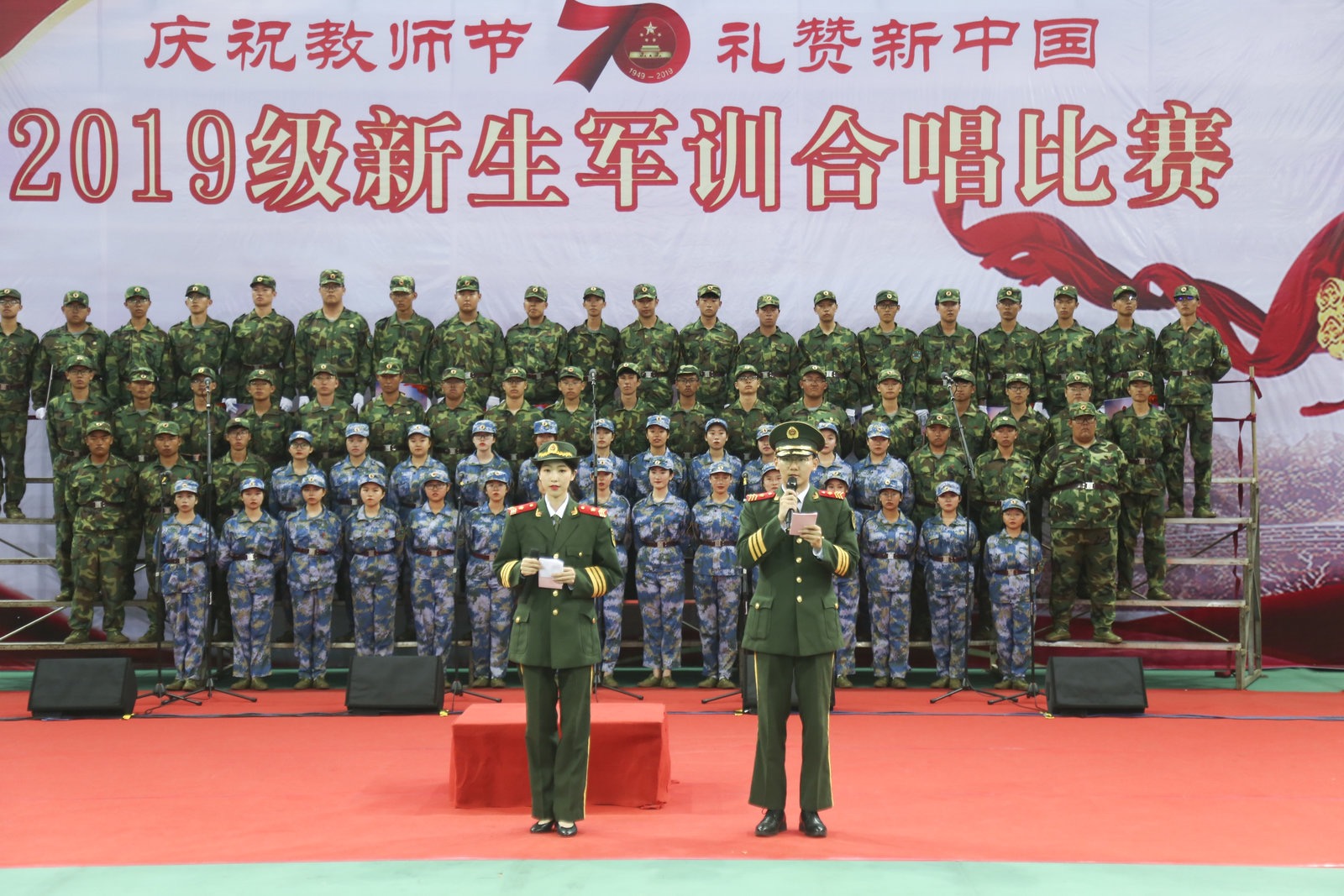 头号玩家举办“庆祝教师节,礼赞新中国”2019级新生军训合唱比赛